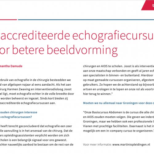 Al toen ik in opleiding was tot huisarts had ik een echo apparaat tot mijn beschikking. Direct na mijn opleiding tot radioloog ben ik begonnen met onderwijs in de echografie aan huisartsen. Ik heb altijd veel plezier in dit onderwijs aan deze nieuwsgierige en vernieuwende ondernemers. Met name het principe van learning-by-doing staat me zeer aan, het is dan ook de basis van onze opleidingen.